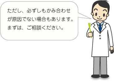 ![]() かみ合わせが悪いと、食べかすやプラークがたまりやすくなり、むし歯や歯周病の原因となります。